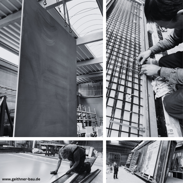 Geithner Bau Projekt: 4 cm dünne Vorgangfassadenteile in großen Abmaßen mit Carbonbewehrung