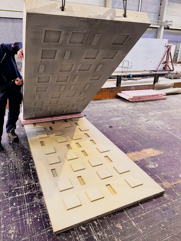 - Wirtschaftlichkeit: Die Wiederverwendbarkeit der Matrizen macht dieses Verfahren für die Serienproduktion von Betonfertigteilen sehr effizient. Die präzise Oberflächengestaltung erfolgt in einem einzigen Arbeitsschritt.